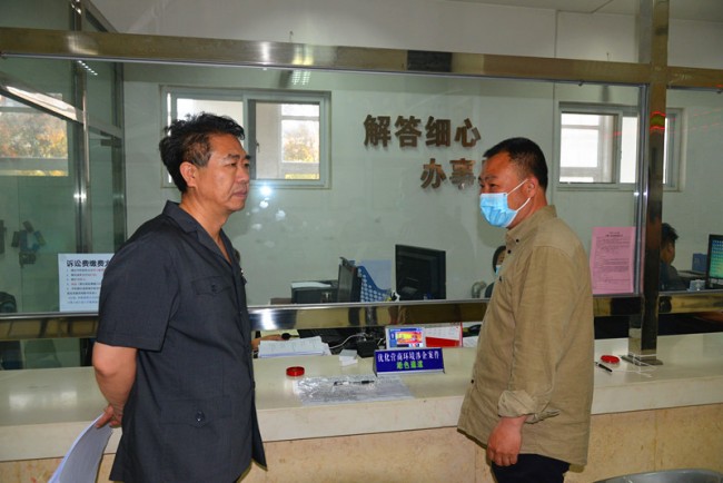 当天上午十点,王永亮院长来到诉讼服务中心立案大厅,遇到前来办理诉讼业务的卫辉市某银行的工作人员,就与他一道全程参与查看办事指南、准备材料、进行窗口办理。在与银行工作人员交流过程中,了解到银行提起民事诉讼是通过网上立案、网上缴费进行,并且当天提交诉讼材料,当天就能收到审核通过的短信,表示对法院在诉讼服务方面非常满意。